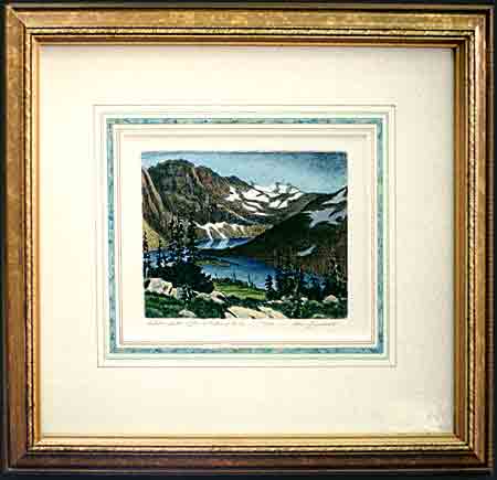 $175. Framed (shown with a double white mat with hand colored lines and panel)