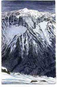 The scene is based on drawings made on a weekend hike in May. The ridge below the peak is visible from Highway 93 in the Bitterroot Valley far below.